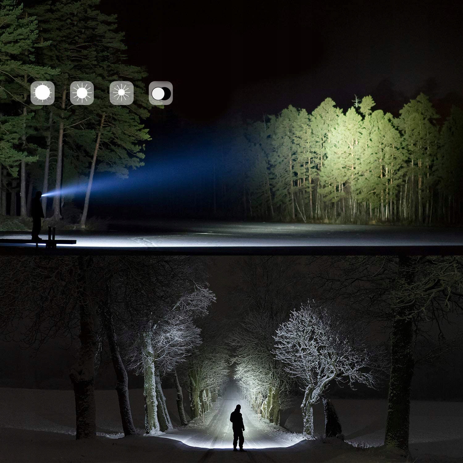 • 5 načinov osvetlitve: 100%, 60 %, 30 %, stroboskop, SOS