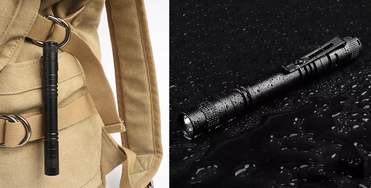 • Sponka omogoča pritrditev svetilke npr. na pas