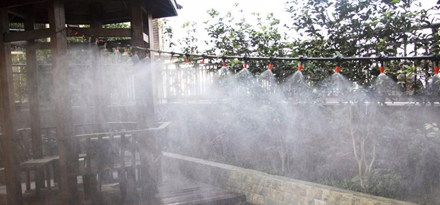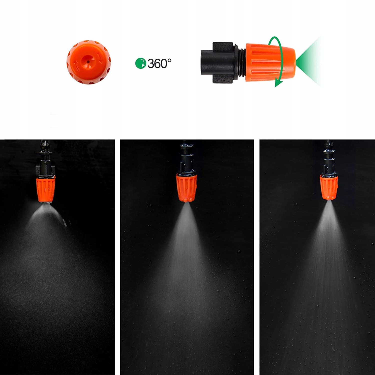 20 ŠOBE ZA ŠKROPILNICO – visokokakovostne šobe ustvarjajo zelo lahko in nežno vodno zaveso, ki uravnava temperaturo okolice in omogoča njeno učinkovito znižanje. Premer šobe 6 mm ustvarja „vrtno klimo“.