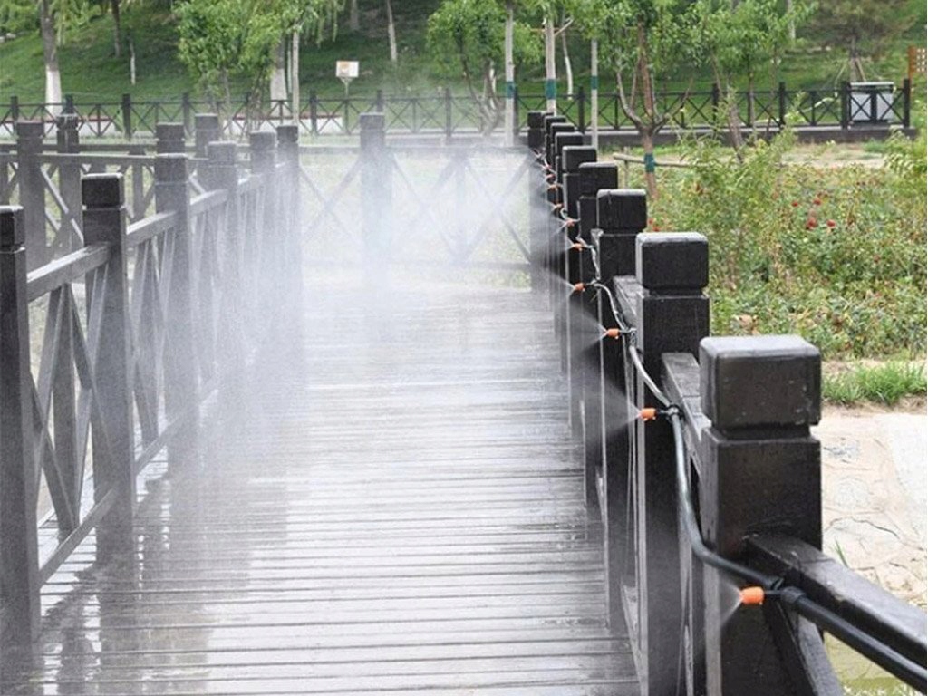 TAKOJŠNJE HLAJENJE IN HIDRACIJA – vodna zavesa se med drugim uporablja za hlajenje poleti, zahvaljujoč šobam z drobno mrežico, ki ustvarjajo nežno meglico. Izhlapevajoča voda črpa toploto iz okolja in v vročih dneh ohladi zrak do 10 °C. Višja kot je temperatura zraka, večji je hladilni učinek.