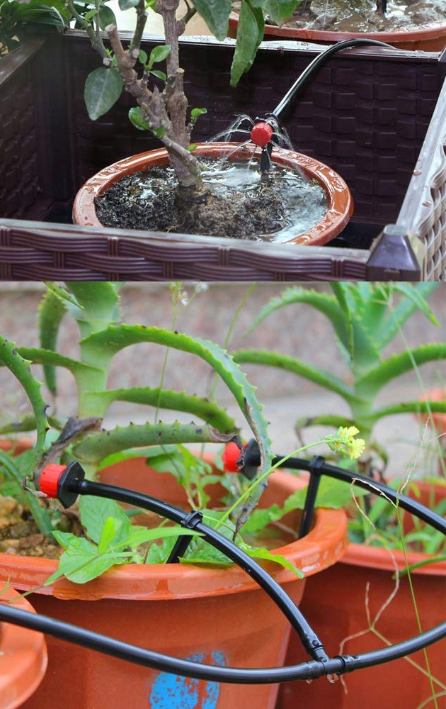 Sistem kapljičnega namakanja blagodejno vpliva tako na okrasne rastline in cvetje kot tudi na sadje in zelenjavo, namenjeno za uživanje.
