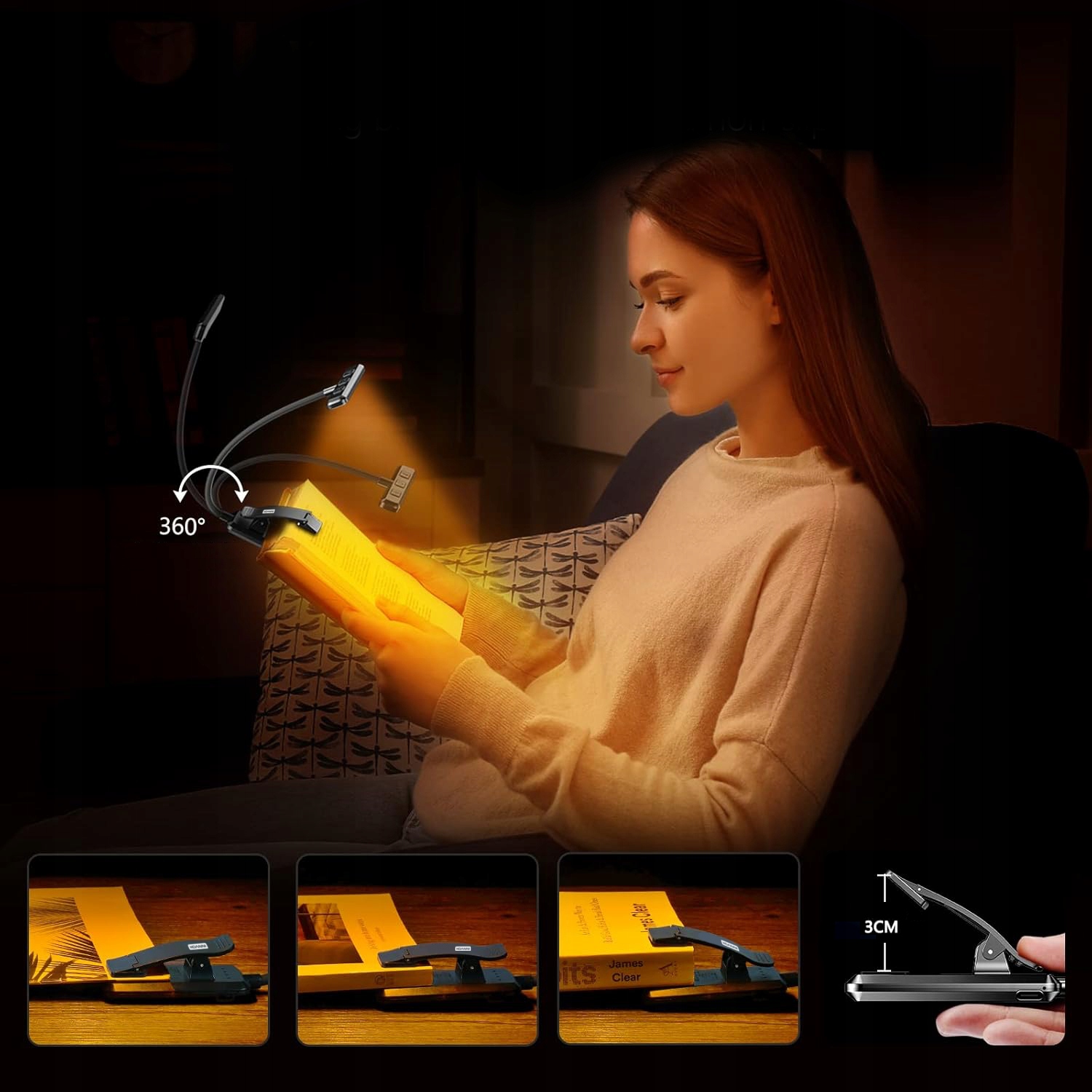 shumee LED NOČNA LUČKA ZA BRANJE KNJIG USB S SPONKO 18 LED 360°