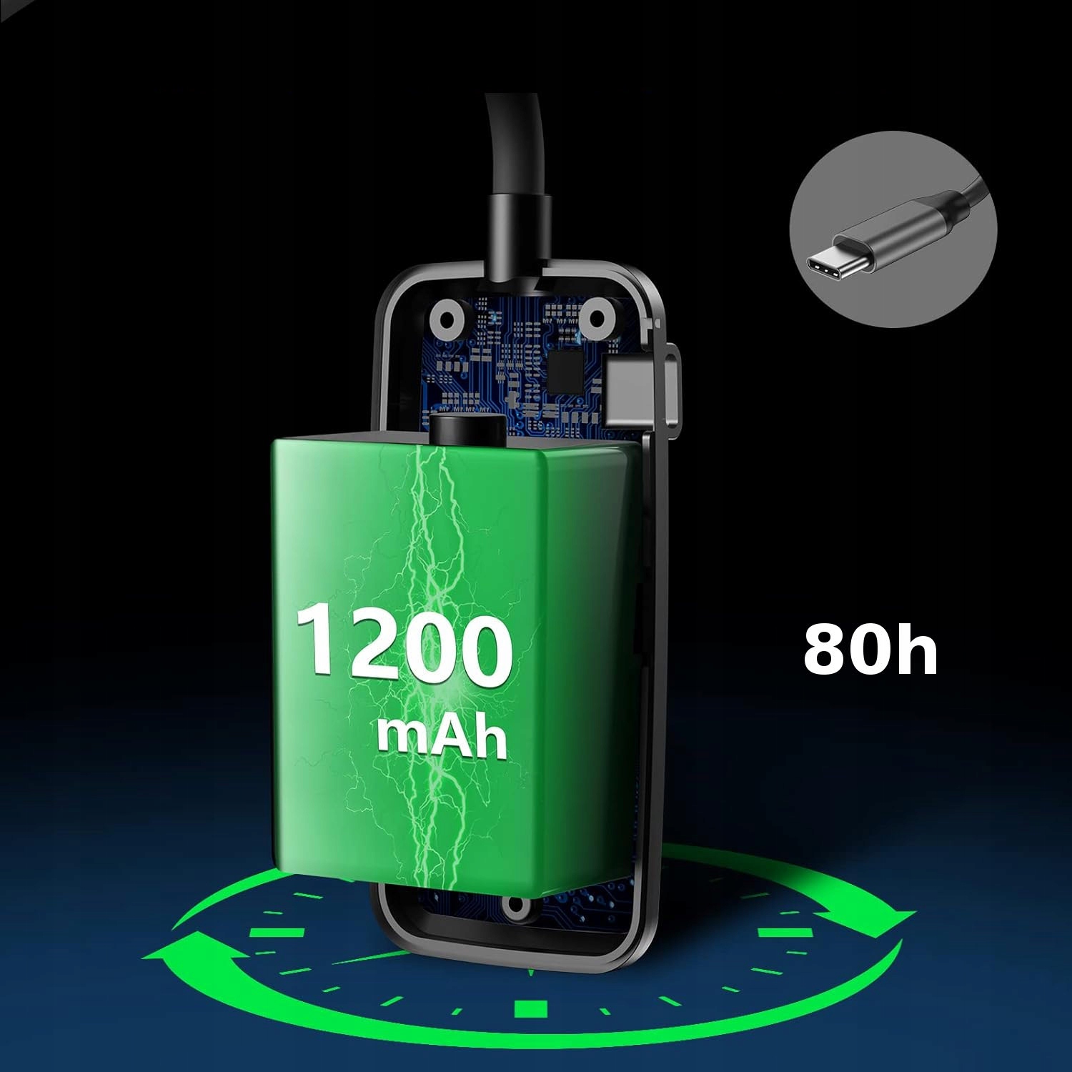 - POLNJENJE PREKO USB-JA – Litij-ionska baterija s kapaciteto 1200 mAh omogoča uporabo svetilke do 80 ur.