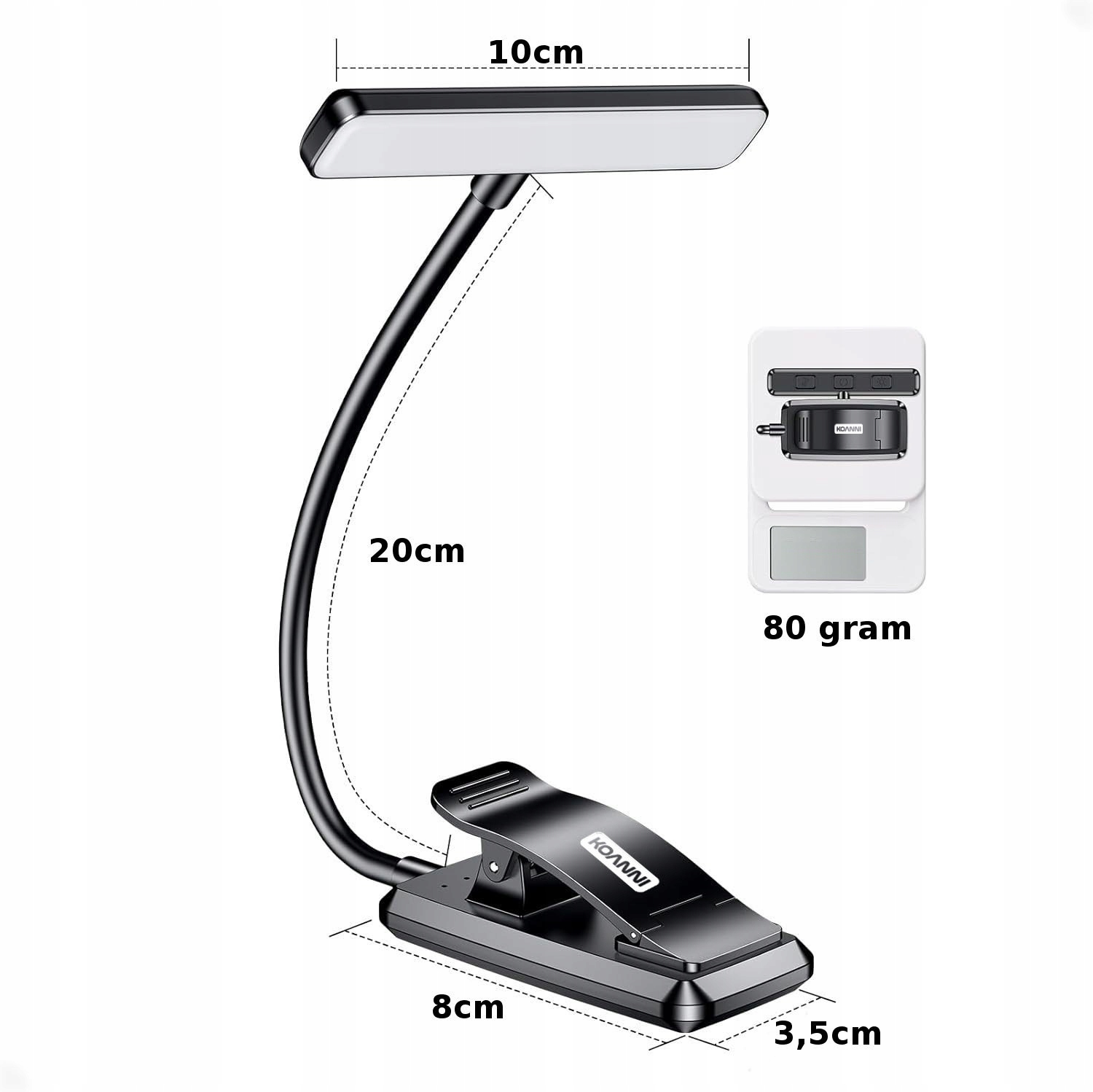 Zahvaljujoč fleksibilnemu „labodjemu vratu“ z dolžino 20 centimetrov lahko individualno osvetlitev prilagodite svojim potrebam, kar je še posebej uporabno pri branju ponoči.