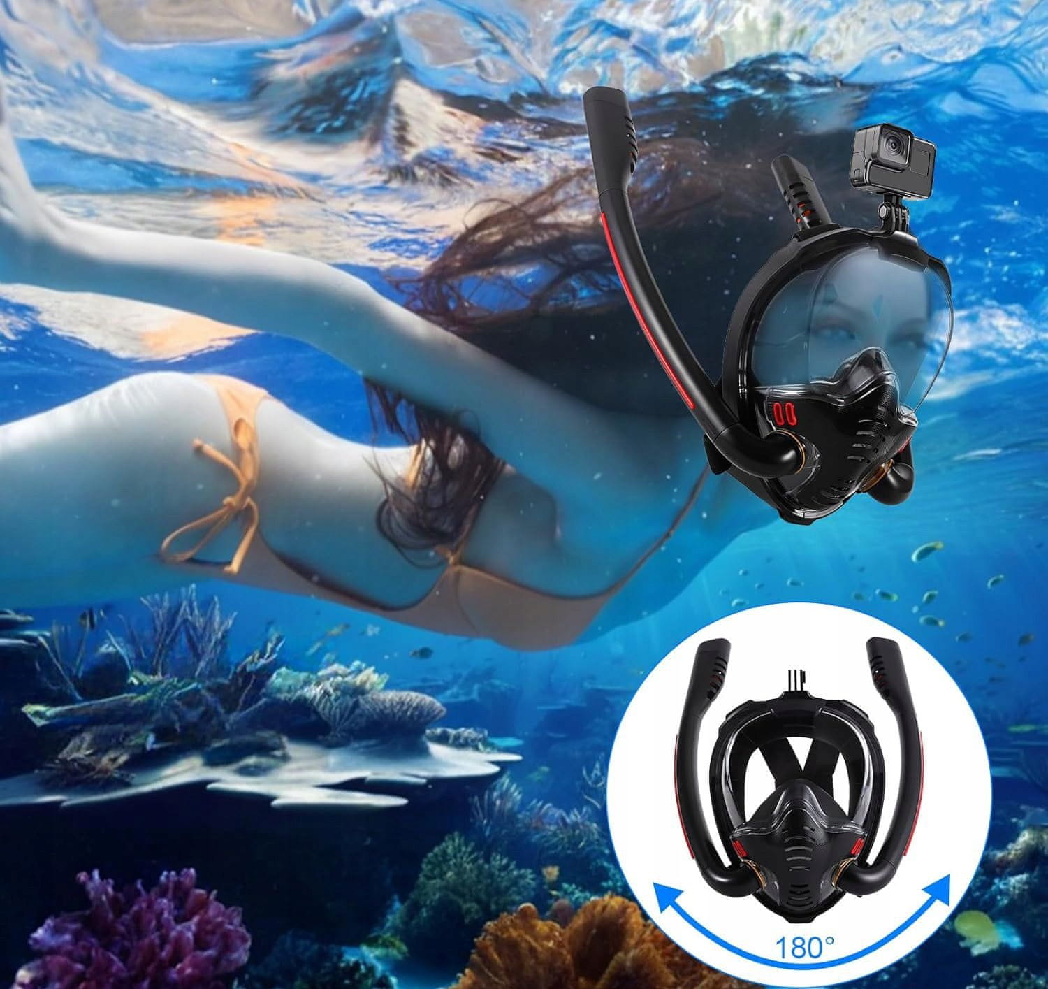 ✅POLNO 180° VIDNO POLJE : Zagotavlja širok kot gledanja, ki vam omogoča opazovanje okolice pod vodo v vse smeri.