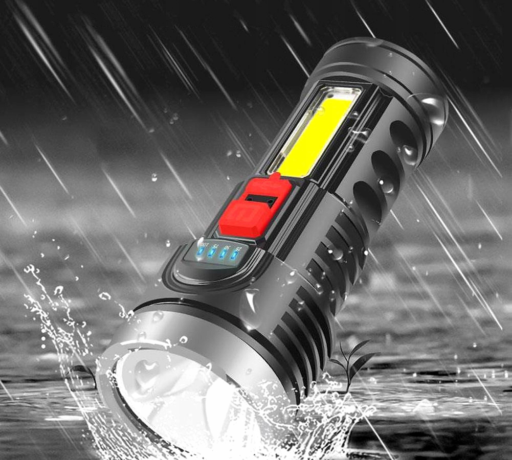 Lahka in priročna LED svetilka, opremljena z dvema LED diodama: OSL in COB. Prva sveti z usmerjenim svetlobnim snopom in je idealna za osvetljevanje oddaljenih prostorov. Druga, nameščena ob strani, sveti s širšim svetlobnim snopom. Popolna za branje, kot delavniška svetilka ali kot namizna svetilka. Med načini preklapljate s pritiskom na stikalo.