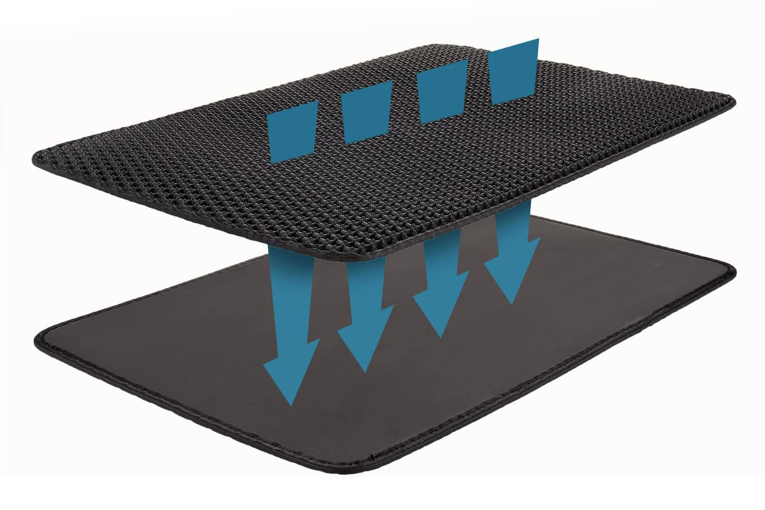 Preprosto jo postavite poleg mačjega stranišča in vaša mačka bo za seboj puščala delce stelje, ko bodo šli skoznje. Podloga je izdelana iz dveh plasti – mrežice za lovljenje odpadkov in nedrseče spodnje plasti.