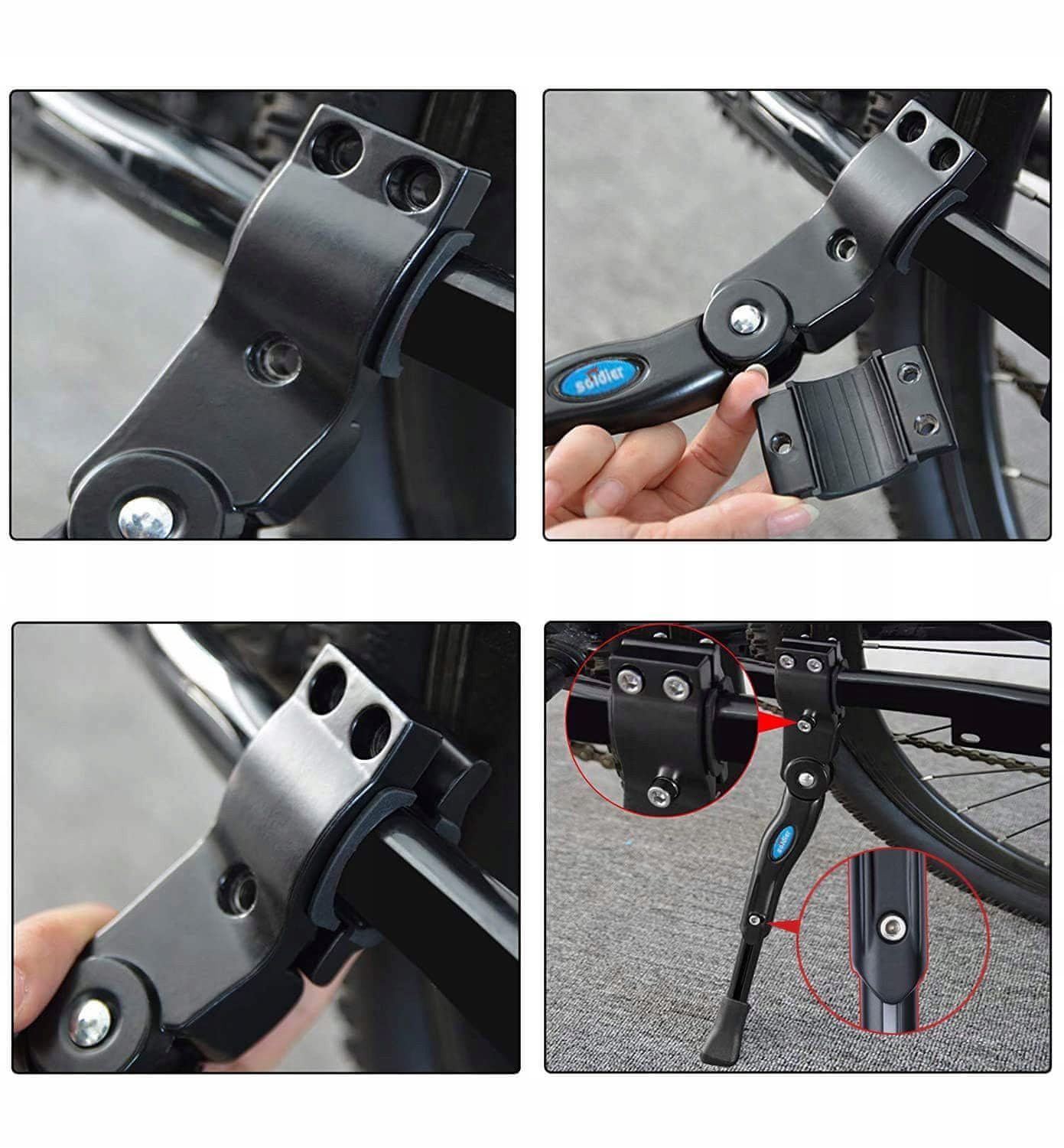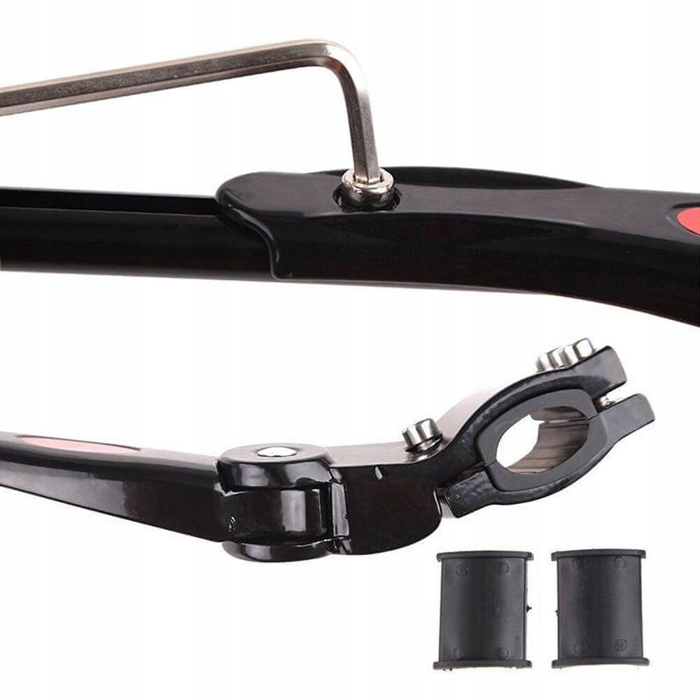 •  – izdelek se pritrdi na zadnjo cev z imbus ključi (niso priloženi); stojalo je primerno tudi za kolesa z disk zavorami. Montaža traja le 2 minuti.