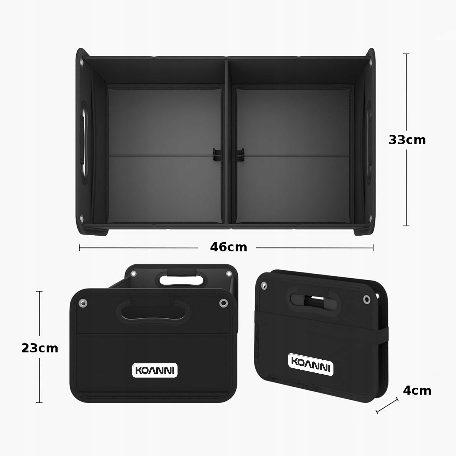 Notranjost, razdeljena na dva predelka in z dodatnimi mrežastimi vložki, je idealna za shranjevanje manjših predmetov. Uporaba torbe je hitra, enostavna in brez težav. Ima vgrajene ročaje, ki zagotavljajo varen oprijem in preprečujejo lomljenje tudi pri intenzivni uporabi. Pomagal vam bo enostavno ohranjati urejenost prtljažnika avtomobila.