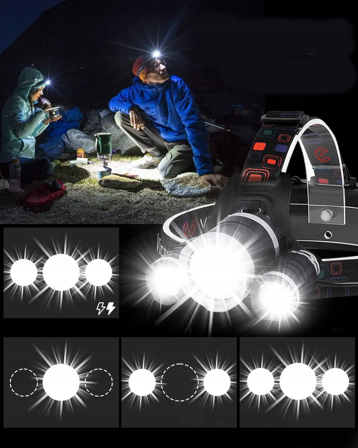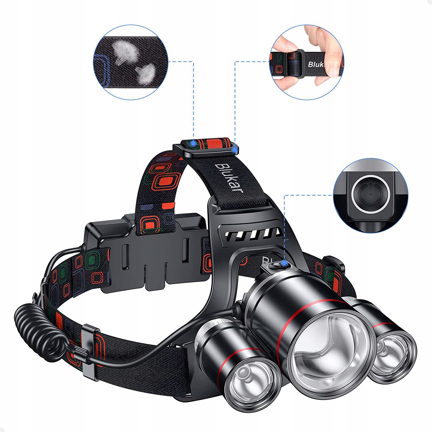 Naglavna svetilka je opremljena s 3 močnimi CREE LED žarnicami, ki zagotavljajo zelo močno svetlobo in dolg čas delovanja.