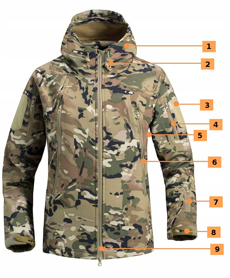 sistem našitih plošč , rebraste manšete in rob ter 7 žepov z zadrgami . Jakna je izdelana iz vmesne poliuretanske membrane, ki ščiti pred slabim vremenom. V notranjosti jakne je tanko polje r. Jakna omogoča hitro odvajanje odvečne vlage, kar posledično zagotavlja visoko udobje in priročnost med nošenjem, tudi med telesno aktivnostjo. VELIKOST XXL (tabela velikosti na dnu dražbe) Specifikacije izdelka