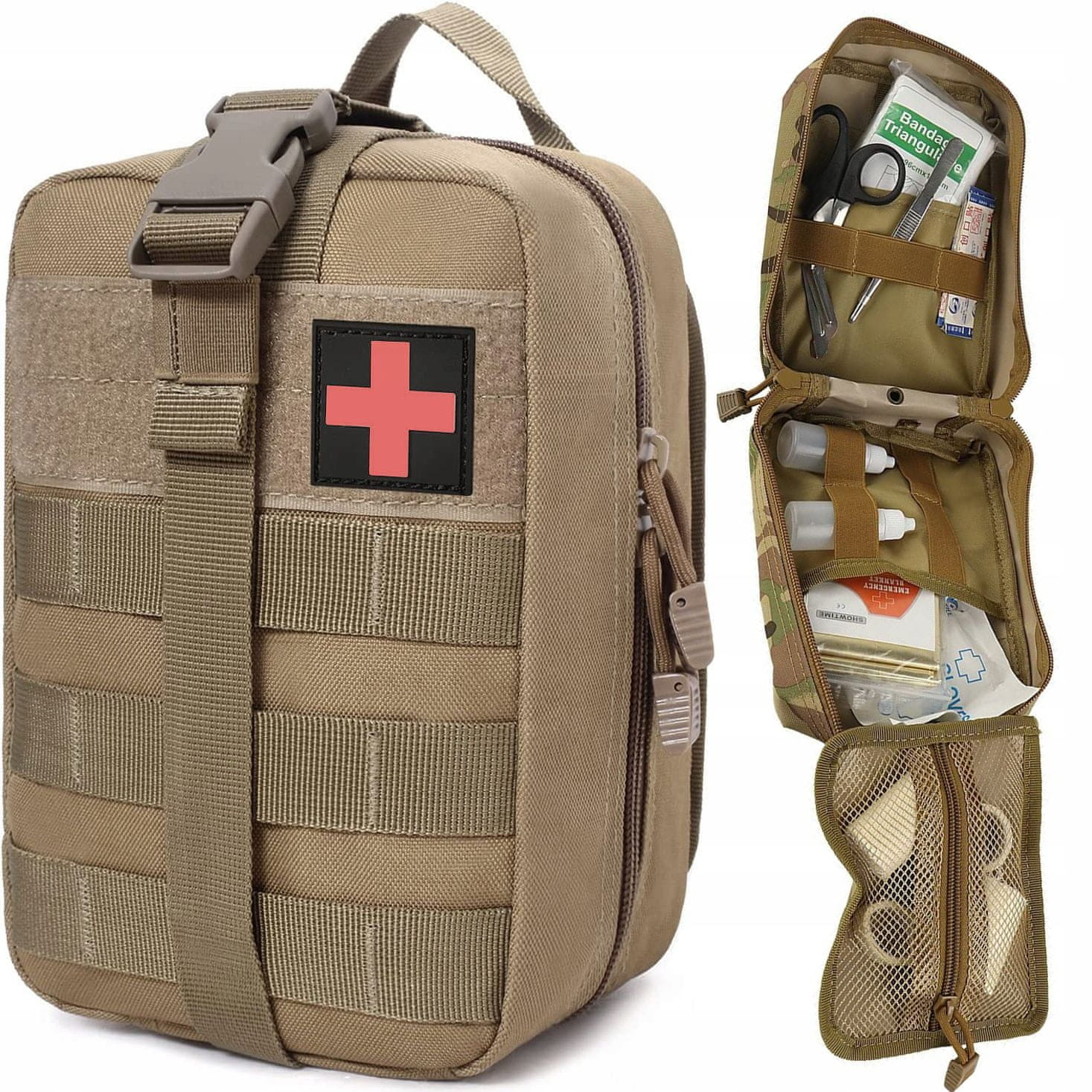 Taktični komplet prve pomoči, torba za prvo pomoč je izdelana iz vodoodpornega, odpornega proti obrabi, vzdržljivega in nepremočljivega materiala 600d Codura