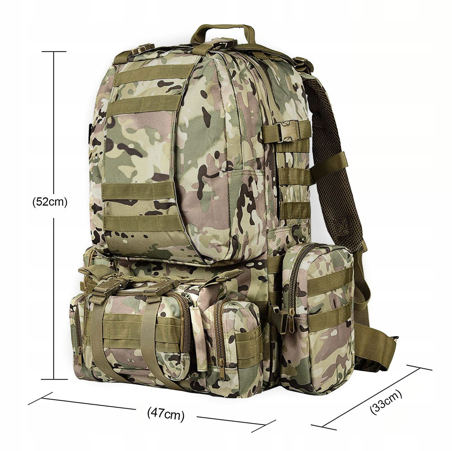 Vojaški taktični nahrbtnik s prostornino 50l z dodatnimi 4-v-1 predali