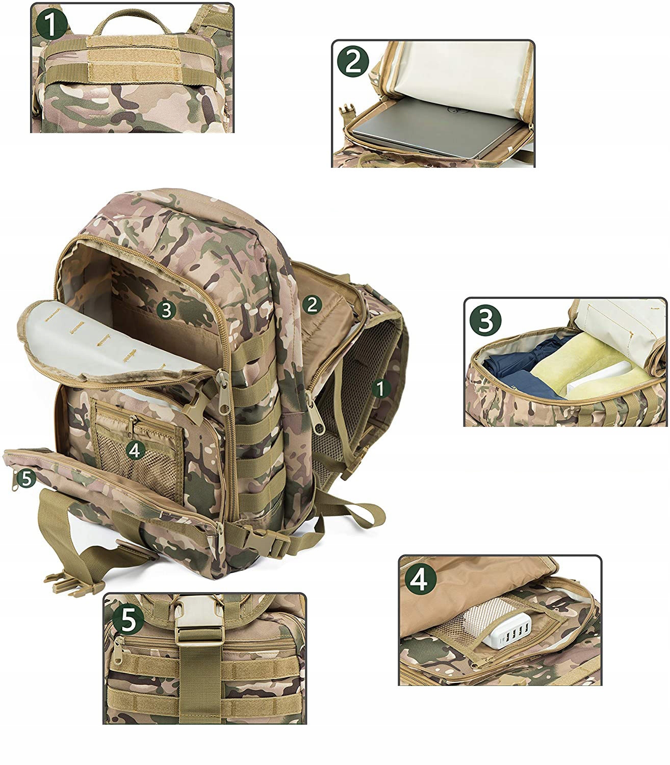 ✅ MOLLE sistem – omogoča pritrditev dodatnih torbic, spalne podloge, spalne vreče itd.