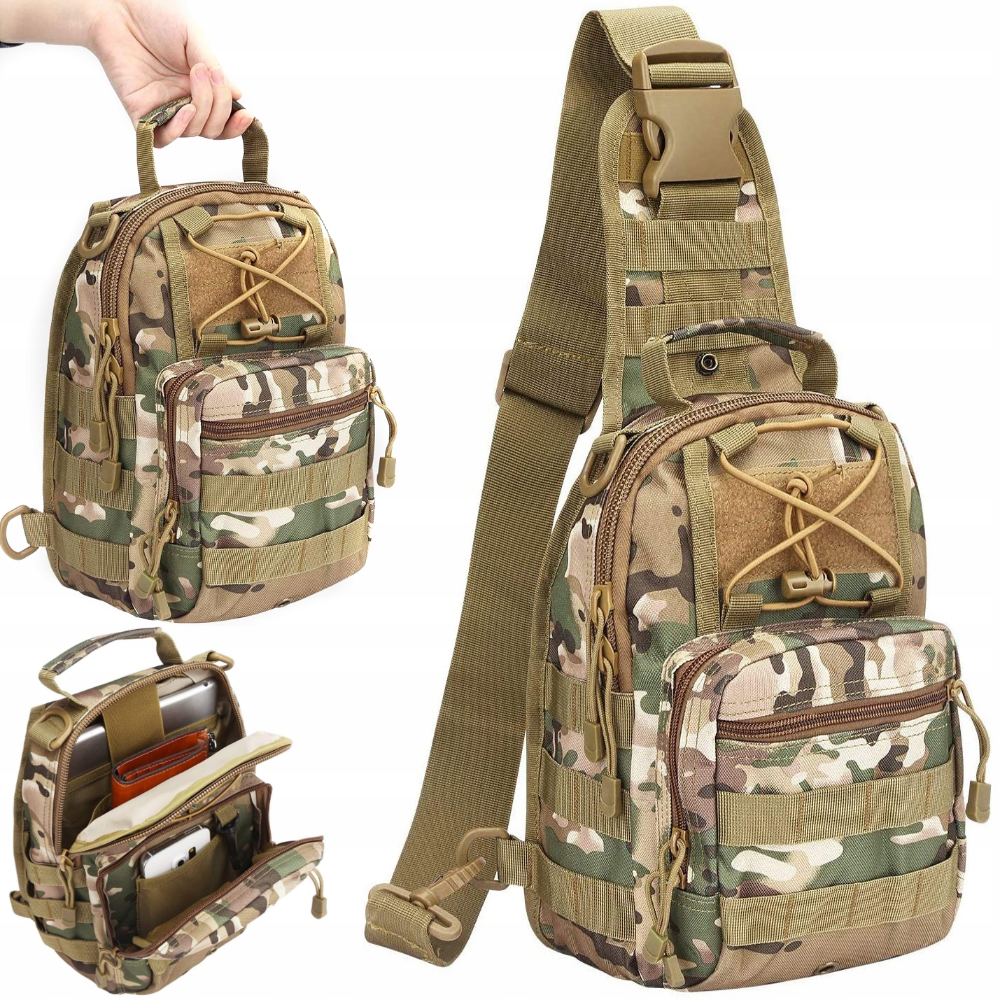 ★ Sistem Molle na sprednji strani. Vanj lahko pospravite tudi torbice, očala ali druge taktične dodatke/pripomočke. Idealen za nedeljski izlet, kolesarjenje, pohodništvo, potovanja, tek, fitnes, kampiranje in druge aktivnosti na prostem.
