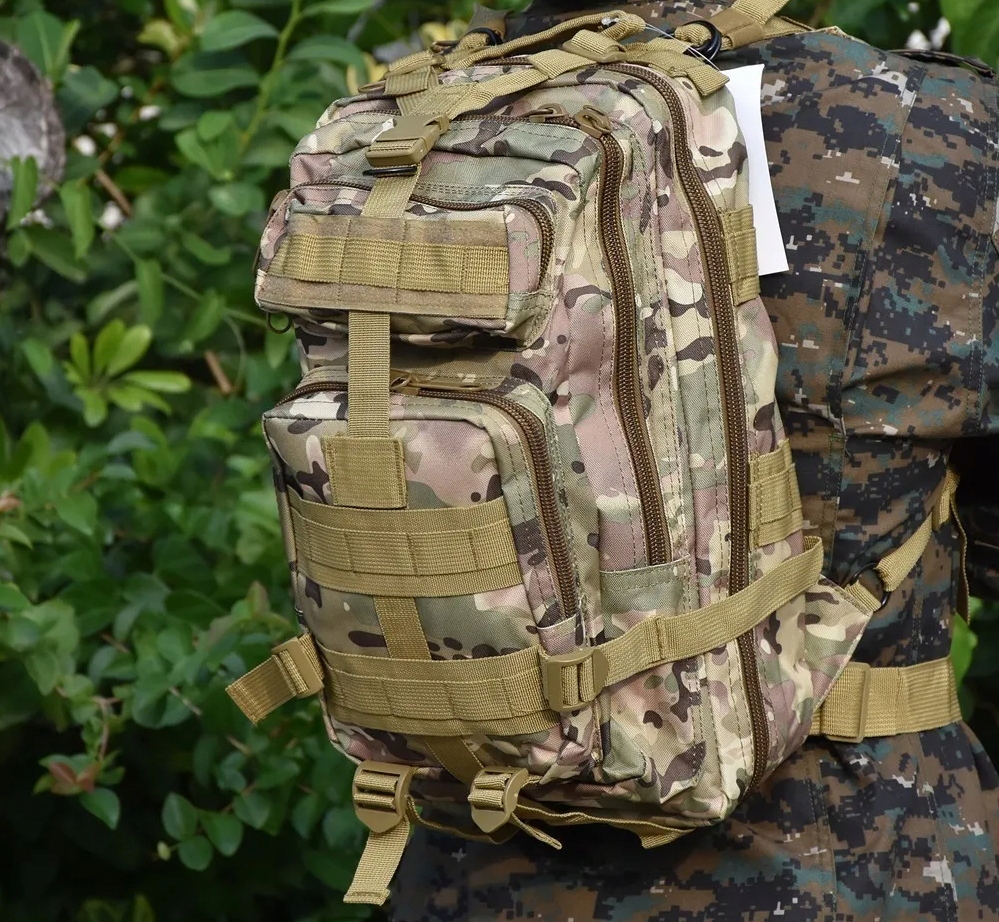 Taktični nahrbtnik, izdelan po vzoru nahrbtnikov, ki se uporabljajo v vojski.