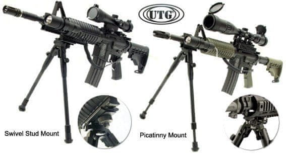 Univerzalni bipod priznanega ameriškega podjetjaLeapers model TL-BP69S (zložljiv bipod).    Izdelan iz najkakovostnejše letalske aluminijeve zlitine. Opremljen z gumijastimi oporami za noge. Glava se lahko vrti in vzmetne noge.
