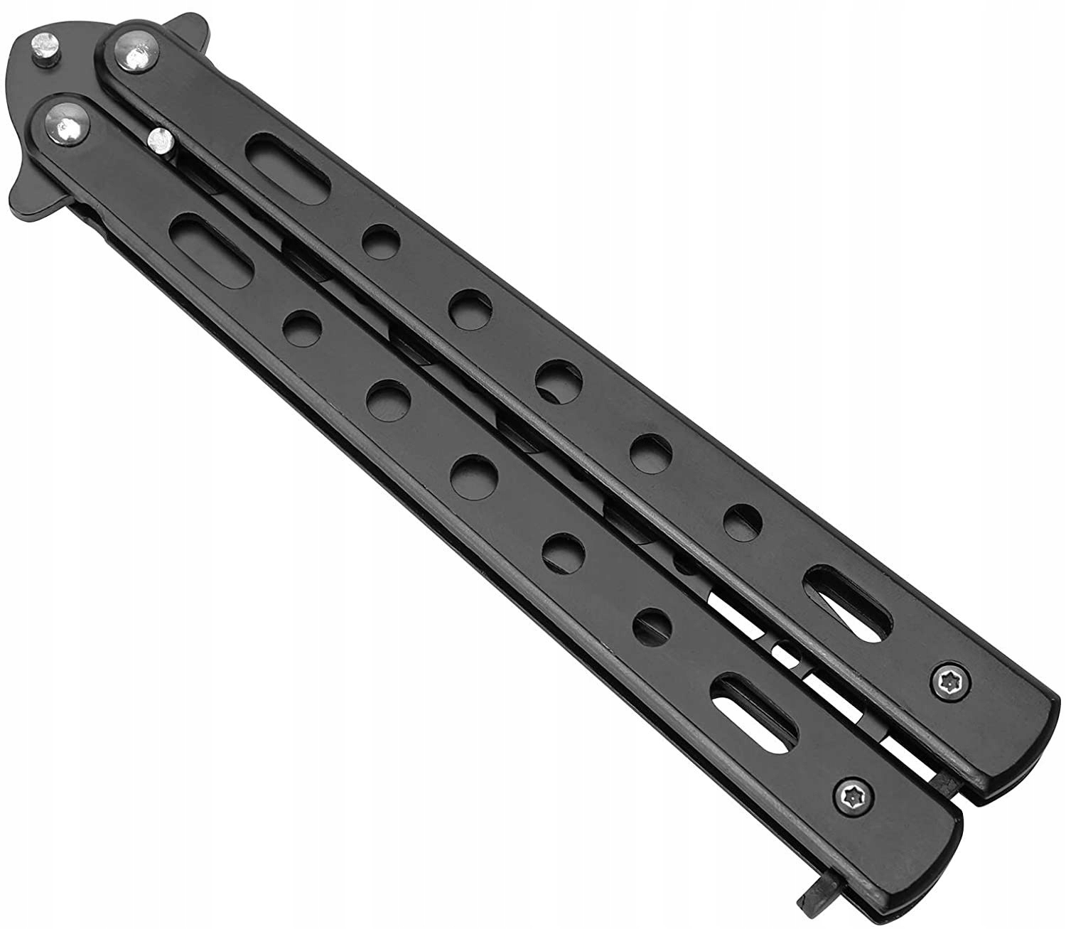 Varen nož metulj za učenje trikov. V celoti je izdelan iz kovine, primerno težak in uravnotežen. Enostaven za zlaganje in razstavljanje. Ima zaklepanje rezila z zaskočko.
