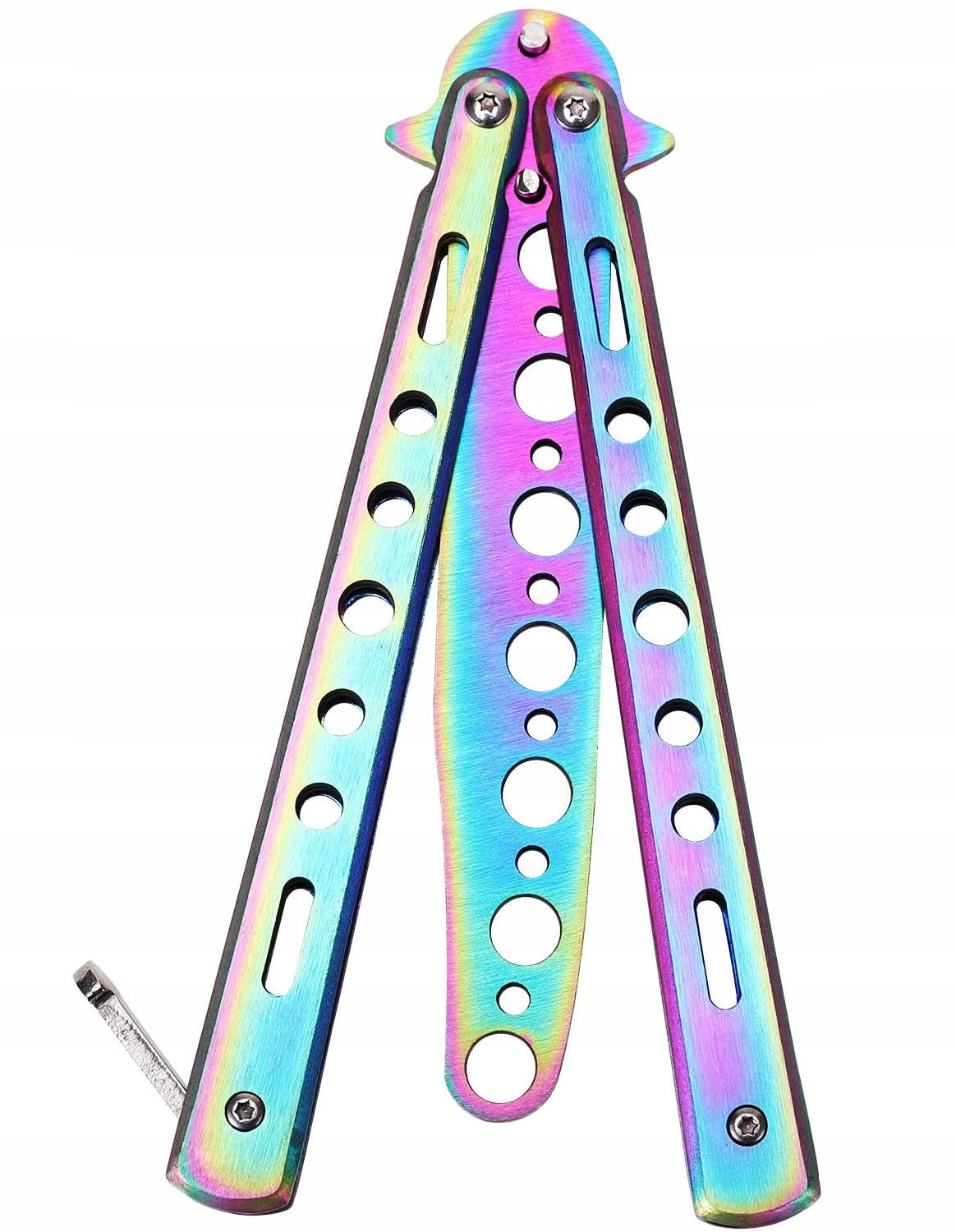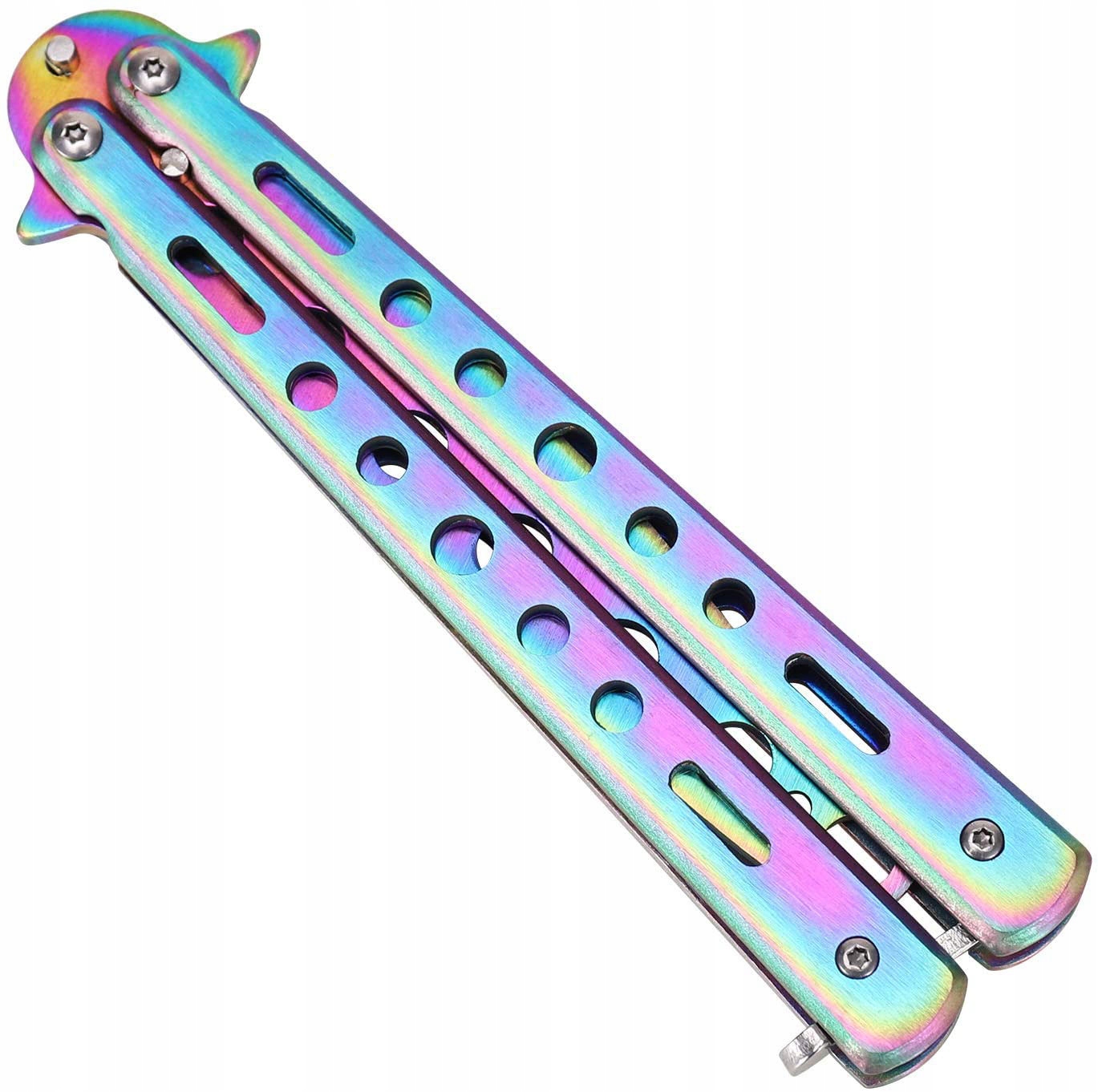 Varen nož metulj za učenje trikov. V celoti je izdelan iz kovine, primerno težak in uravnotežen. Enostaven za zlaganje in razstavljanje. Ima zaklepanje rezila z zaskočko.