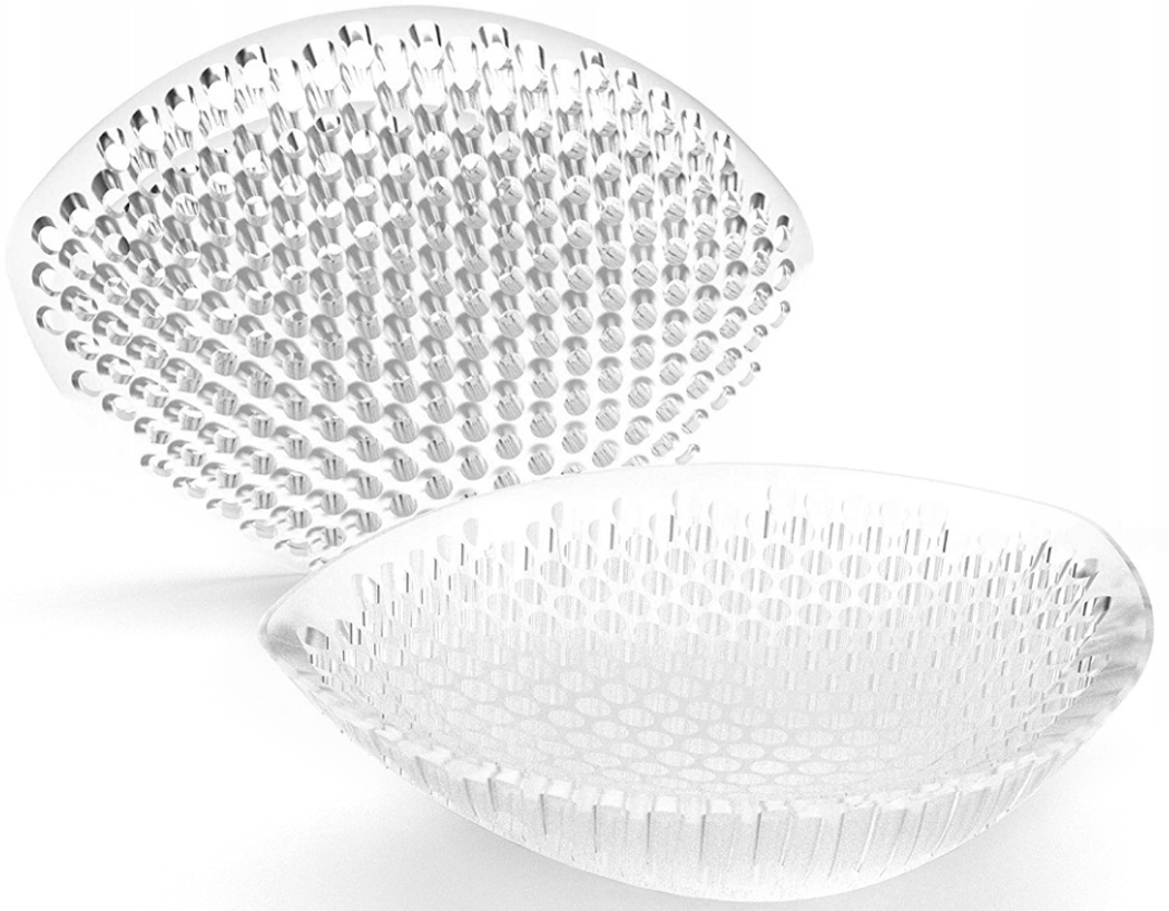 Viskoznost samega silikona popolnoma zagotavlja, da se ne premikajo, niti med športom. Ne premikajo se, ne zdrsnejo in ne izpadajo. Vidne luknje so perforacije, ki potekajo skozi celotno debelino vložka. Omogočajo koži dihanje in odvajanje odvečne vlage. Luknje tudi znatno zmanjšajo težo vložka.