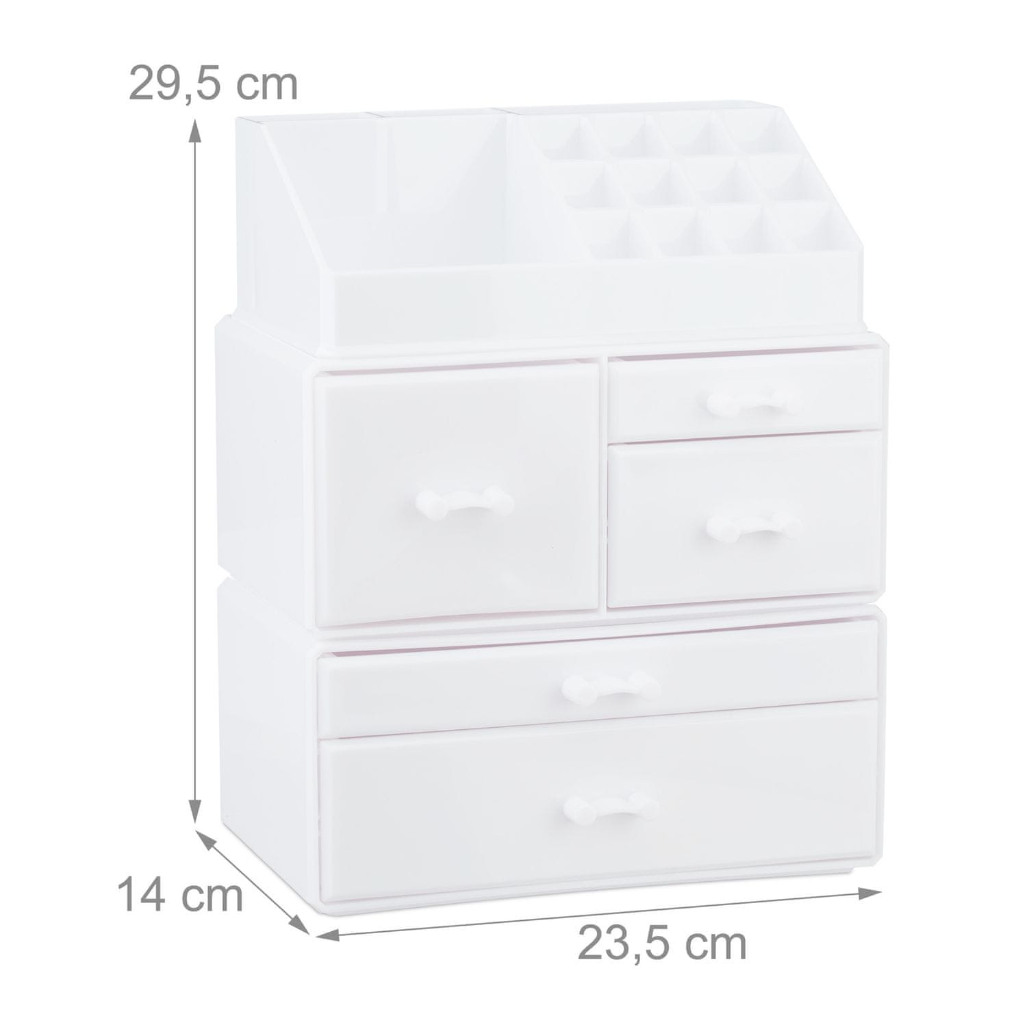 • Organizirajte kozmetiko s 3 prostornimi predali za kreme, pudre in nakit.