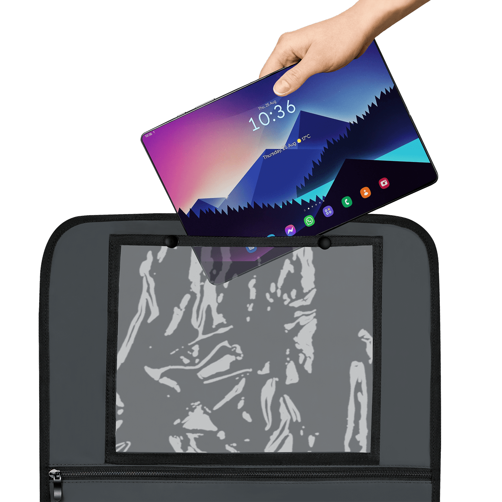 Organizator za sprednje sedeže Lionelo SeatOrganizer Lionelo SeatOrganizer je organizator za avto, obešen na zadnji strani naslonjala sprednjega sedeža, ki bo pomagal pritegniti otrokovo pozornost med potovanjem, ohranjati urejenost avtomobila in zaščititi sedež pred umazanijo (npr. pred otrokovimi čevlji). 5 žepov različnih velikosti omogoča optimalno organizacijo vseh potrebščin. Med drugim se prilega tja. tablico, na kateri lahko otrok gleda pravljice. Med pregledom ima lahko otrok dostop do prigrizkov ali pijače. Organizator poveča varnost otroka ob nenadnem zaviranju ali prometni nesreči. V njem skrite majhne stvari, zelo potrebne za nego, bodo v primeru trka ostale na mestu. Lionelo SeatOrganizer je nepogrešljiv spremljevalec na potovanju z otrokom – olajša igro, poveča varnost in pomaga ohranjati red. Kaj ga dela drugačnega? – 5 žepov – Žep za tablico – Enostavno sestavljanje s sponko – Vodoodporno eko usnje Zakaj ga imajo starši radi? – Poveča varnost – ščiti potnike pred nenadzorovanim udarcem v nezavarovane predmete pri nenadnem zaviranju ali nesreči. – Pomaga vzdrževati red in pritegniti otrokovo pozornost med vožnjo. 5 žepov za različne namene Velik žep na zadrgo, 2 manjša žepa za steklenice ali prigrizke, majhen praktičen žep in žep za tablico poskrbijo, da bo vaš avto organiziran in da bo vse pri roki. Žep za tablični računalnik (do 13'') Zaščiten žep s prozornim okencem, ki omogoča upravljanje zaslona na dotik, je najbolj priročen način, da otroka vzbudite zanimanje na poti, npr. s prikazovanjem pravljic. Otrok ima dostop do naprave, vendar je ne bo umazal. Močna, trpežna in enostavna za čiščenje Visokokakovostno eko usnje z vodoodpornimi lastnostmi ščiti sedež pred vlago in umazanijo, čiščenje organizatorja pa je zelo enostavno – le obrišite ga z vlažno krpo. Ojačani šivi prav tako ščitijo žepe pred trganjem. Enostavna montaža in univerzalna velikost Organizator lahko hitro sestavite z močnimi trakovi, pritrjenimi s sponko. Je univerzalen in primeren za večino modelov avtosedežev.