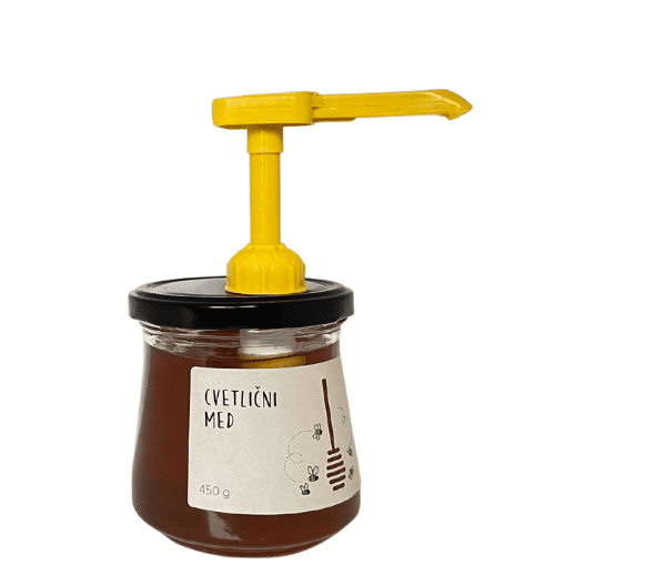 Dozator za med higiensko odmeri želeno količino medu brez odpiranja kozarca. Nežen pritisk odmeri za približno pol žličke medu. Za več medu močneje pritisnete na pumpico dozatorja. Počakate, da se vrne v začetni položaj in znova uporabite.
