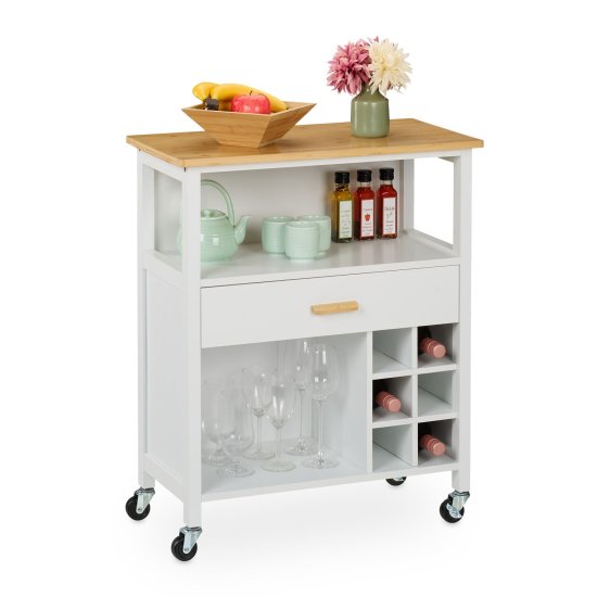 Northix Kuhinjski otočni voziček z bambus vrhom in stojalom za vino
