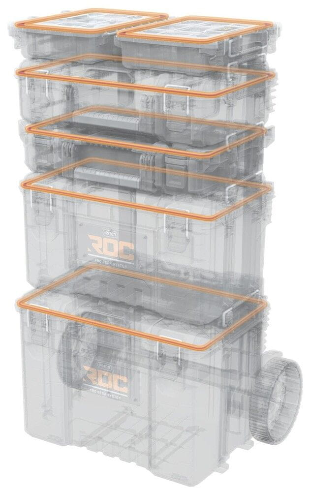 Posebej oblikovan pokrov omogoča pritrditev modulov polovične velikosti, medtem ko stranski ročaji zagotavljajo enostavno prenašanje in povezovanje z drugimi izdelki serije Roc Pro Gear 2.0.