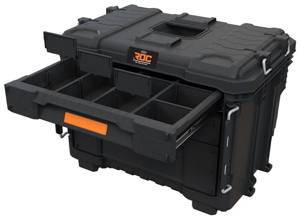 Kovček za orodje Roc Pro Gear 2.0 XL podjetja Keter je 3-predalni XL kovček iz serije Roc Pro Gear 2.0, zasnovan kot praktičen pomočnik za delavnico in na gradbišču.