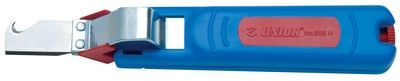 Unior nož za snemanje kabelskih plaščev, s kljukastim rezilom 385H (610930) so odlično orodje za varno in hitro snemanje kabelskih plaščev dimenzije 4 – 28 mm². Odlikuje jih vrtljivo rezilo, ki se samodejno nastavi na obodni ali vzdolžni rez. Zahvaljujoč natančnemu določanju globine rezanja pa ne bo prišlo do poškodb notranjih prevodnikov.