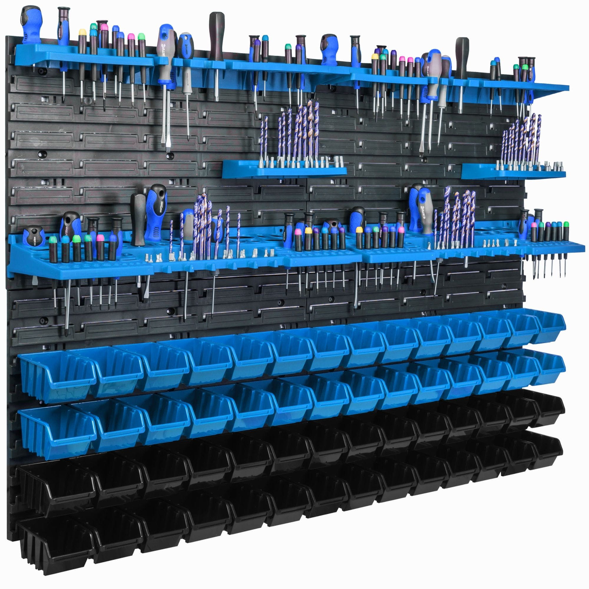 Delavniški panel za orodja 115 × 78 cm z 56 kos Škatla viseče Modra in Črna škatle plastika