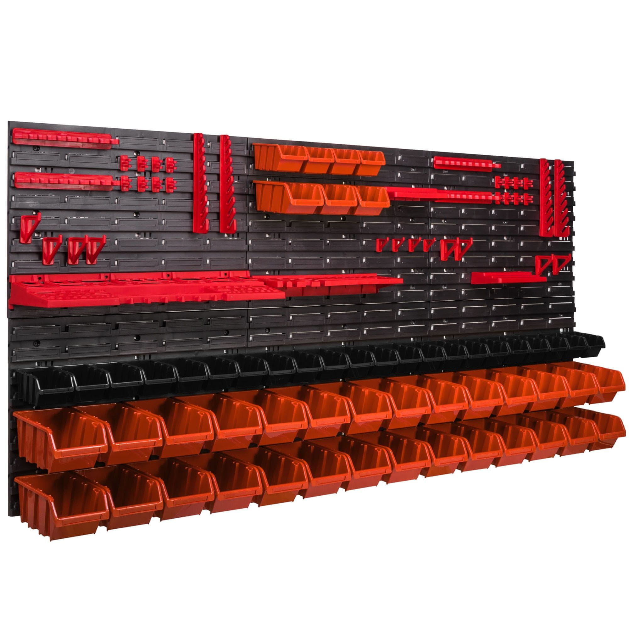 Delavniški panel za orodja 173 × 78 cm z 57 kos Škatla viseče Oranžna in Črna škatle plastika XL