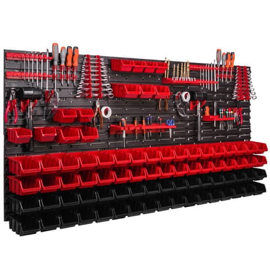 botle Stenska plošča za orodje 173 x 78 cm XL z 81 kos Škatla viseče Rdeča in Črna škatle plastika