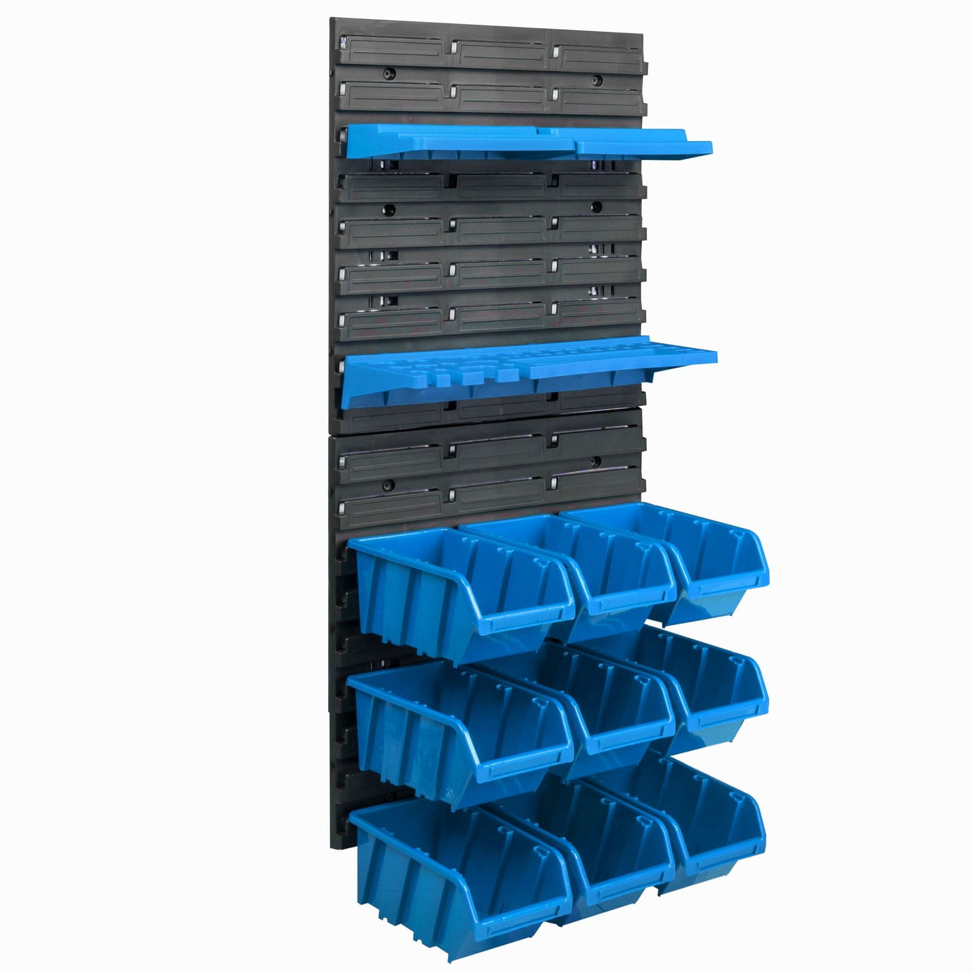 botle Stenska plošča za orodje 39 x 78 cm z 9 kos Škatla viseče Modra škatle s kompletom držal plastika