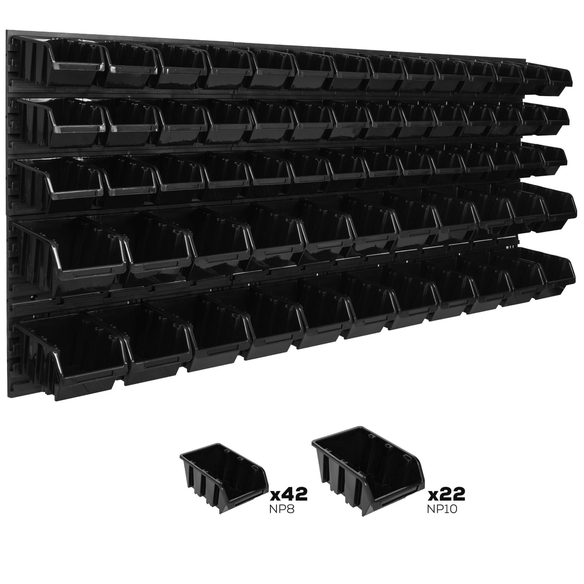 Viseča plošča za orodje 173 × 78 cm z 64 kos Škatla stenskih Črna škatle Sistem za shranjevanje XL