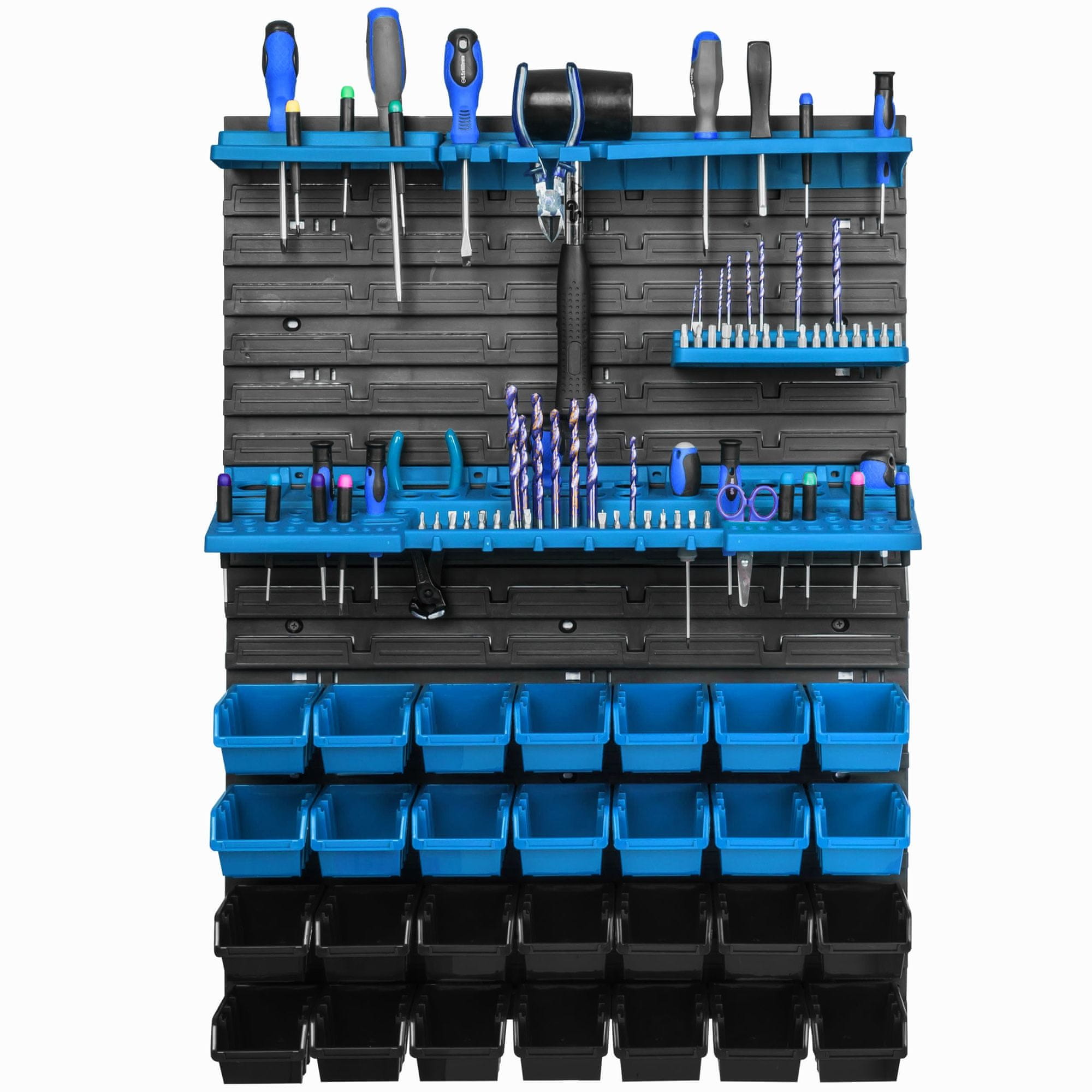 Viseča plošča za orodje 58 × 78 cm z 28 kos Škatla stenskih Modra in Črna škatle plastika
