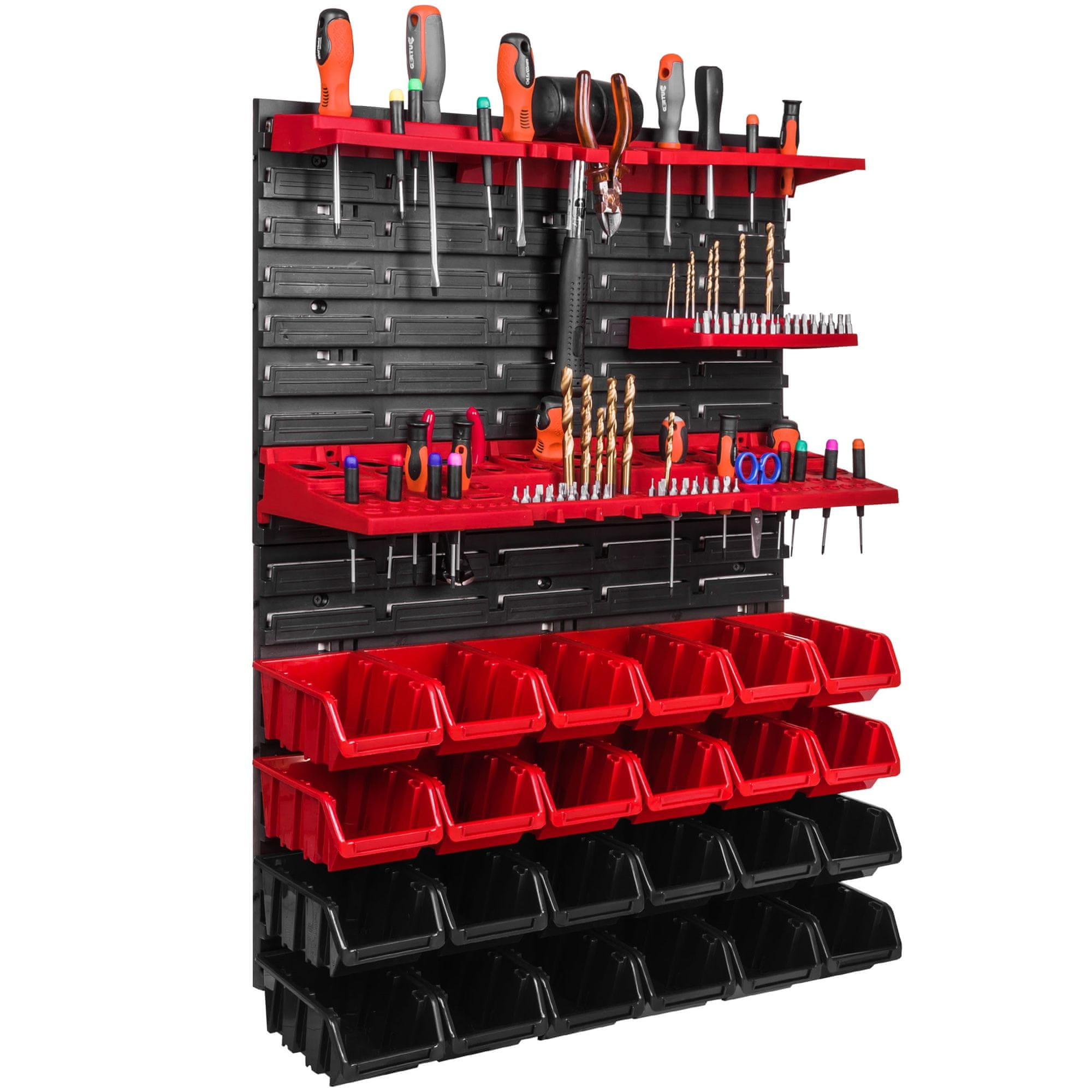 Viseča plošča za orodje 58 × 78 cm z 24 kos Škatla stenskih Rdeča in Črna škatle plastika