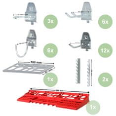 Perforirana deska za orodje je praktična rešitev za domače mojstre in ljubitelje, ki poskrbijo za red na delovnem mestu, v garaži, delavnici ali ateljeju. Izdelek je izdelan iz jekla, odpornega na praske. Komplet vključuje držala za električno orodje, univerzalne kavlje, držala za ključe in držala z