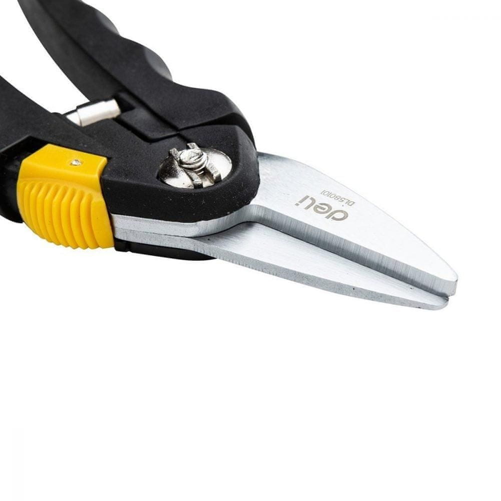 Večnamenske vrtne škarje Deli v črni in rumeni barvi so idealne za obrezovanje gostih grmovnic in majhnih vej. Ozka, ostra rezila so izdelana iz jeklene zlitine in omogočajo hitro in natančno rezanje stebel in vejic do premera 10 mm.