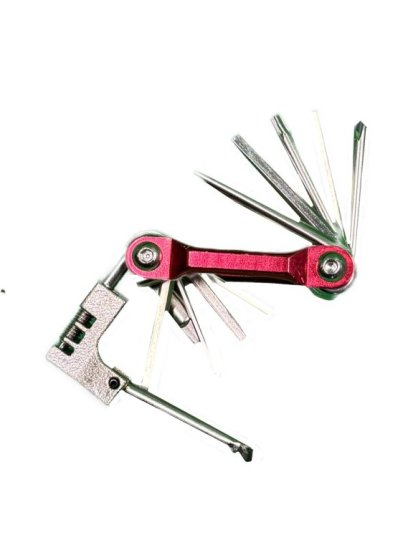 Večnamensko orodje iz visokokakovostnega materiala z vsemi potrebnimi imbusnimi ključi + zakovica. Celoten opis