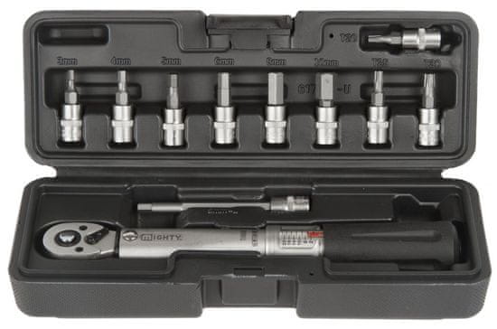 Zaradi vse večje priljubljenosti kakovostnih karbonskih sestavnih delov je kakovosten momentni ključ postal nepogrešljiv pripomoček za vsakega mehanika ali domačo delavnico. Ta momentni ključ zagotavlja natančno delo za navor od 2 do 24 Nm. Ključ (1/4" ročica) je priložen v plastičnem kovčku, ki vključuje imbus ključe 3/4/5/6/8/10 in ključe T25 Torx.