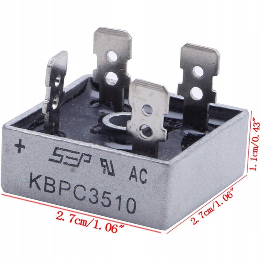 Mostiček usmernika KBPC5010 je idealen za uporabo v napajalnih sistemih, industriji in potrošniški elektroniki. Zagotavlja učinkovito usmerjanje toka pri visokih obremenitvah. Njegove dimenzije 29mm x 29mm x 11mm omogočajo enostavno montažo, z možnostjo pritrditve na hladilnik. Izdelek je primeren t Celoten opis
