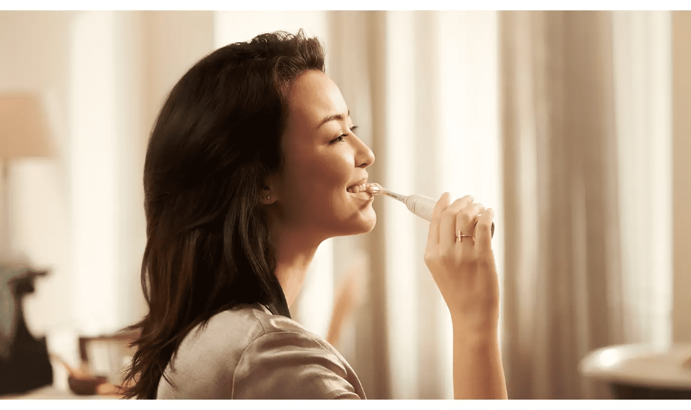 Tehnologija SenseIQ zaznava, se prilagaja in neguje Med ščetkanjem teh