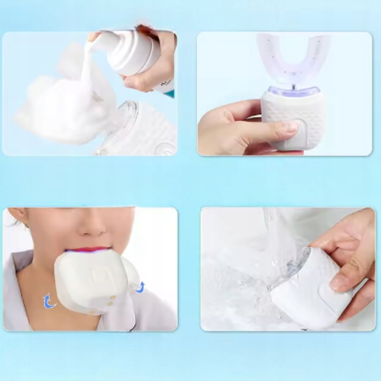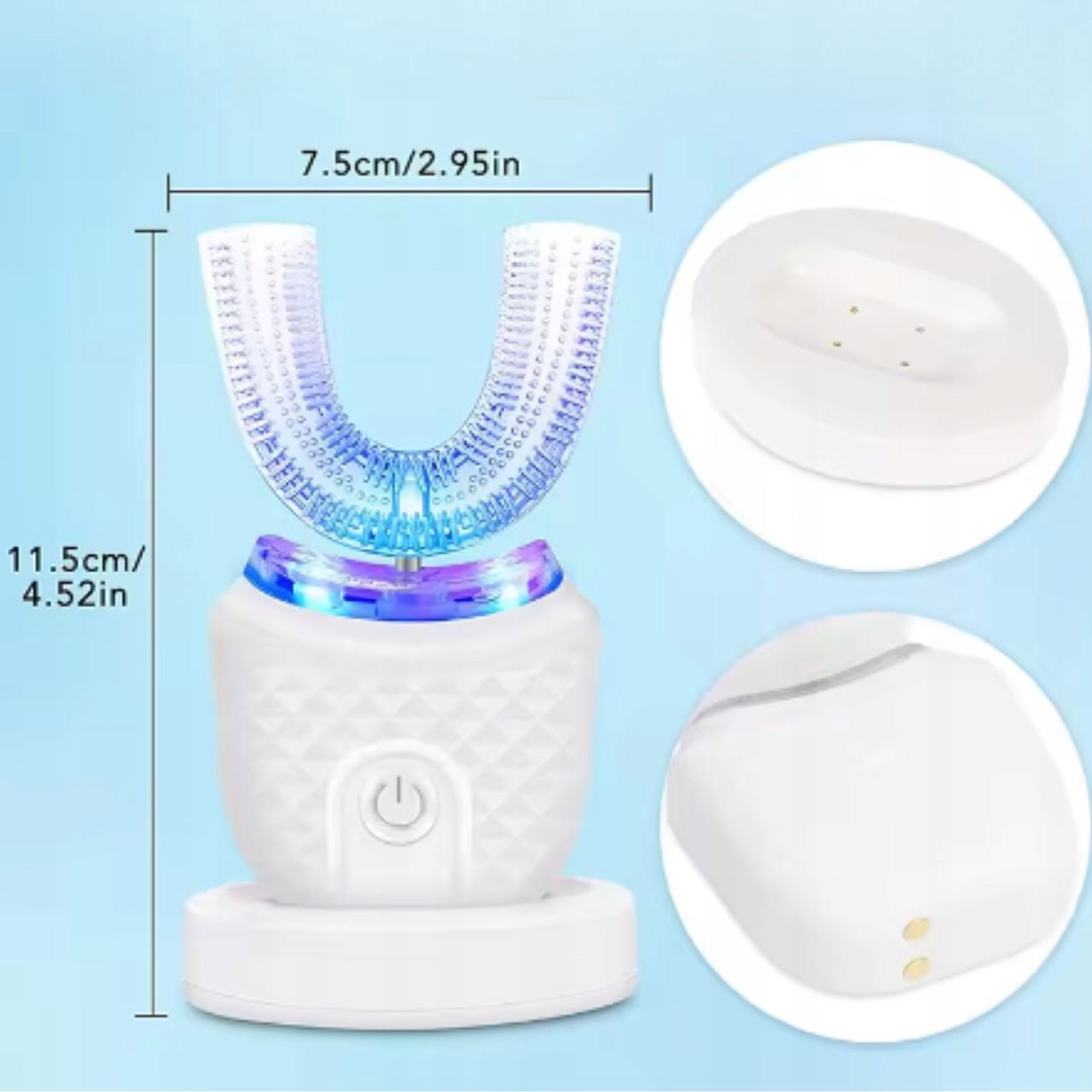 Odkrijte modernoultrazvočna 360° zobna ščetka z UV sterilizacijoki zagotavljacelovito zaščito in ustno higieno! Zahvaljujoč edinstvenemu dizajnu v obliki črke U in ultrazvočni tehnologiji zobna ščetkatemeljito očisti vsak zob hkrati, vam prihrani čas in poskrbi za zdravje vaših dlesni.