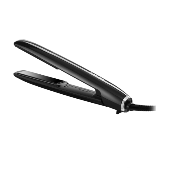 Črni likalnik za lase BaBylissPRO STILISTA BAB3550BE je profesionalni pripomoček za oblikovanje las, opremljen z naprednim ogrevalnim sistemom Advanced Ceramics™ za dvakratno hitrost in enakomerno porazdelitev toplote. Izjemno lebdeče plošče iz titana velikosti 25 × 110 mm zagotavljajo gladko drsenje, medtem ko ionska tehnologija preprečuje kodranje las, zaradi česar so lasje gladki in sijoči.