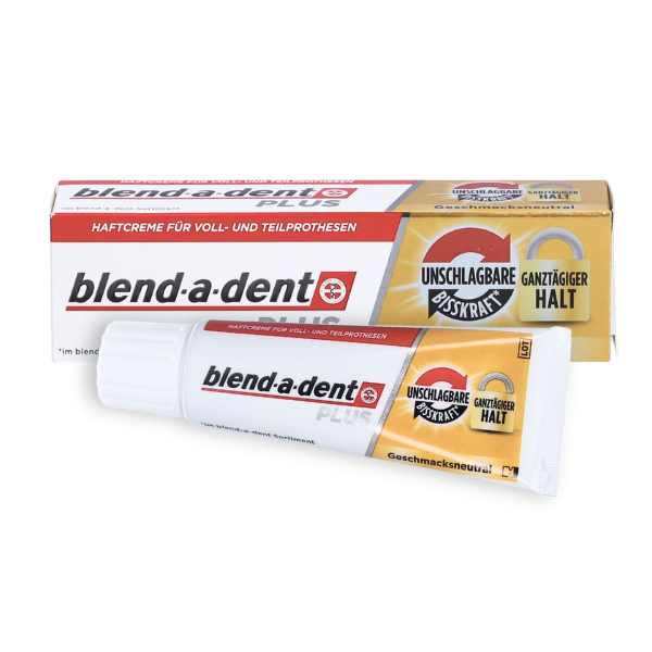 Blend-a-dent Plus je lepilo za proteze, ki zagotavlja močan in dolgotrajen oprijem ves dan. Njegova napredna formula ustvari tanko in prožno plast, ki stabilizira protezo in tako zmanjša tveganje za njeno premikanje med jedjo in govorjenjem. Izdelek poveča udobje nošenja proteze, izboljša njeno prileganje in zagotavlja dodatno zaščito pred delci hrane, ki pridejo pod protezno ploščico.