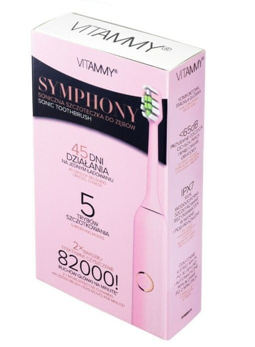 Vitammy SYMPHONY Pink Sonic zobna ščetka z visoko silo vibracij, roza
