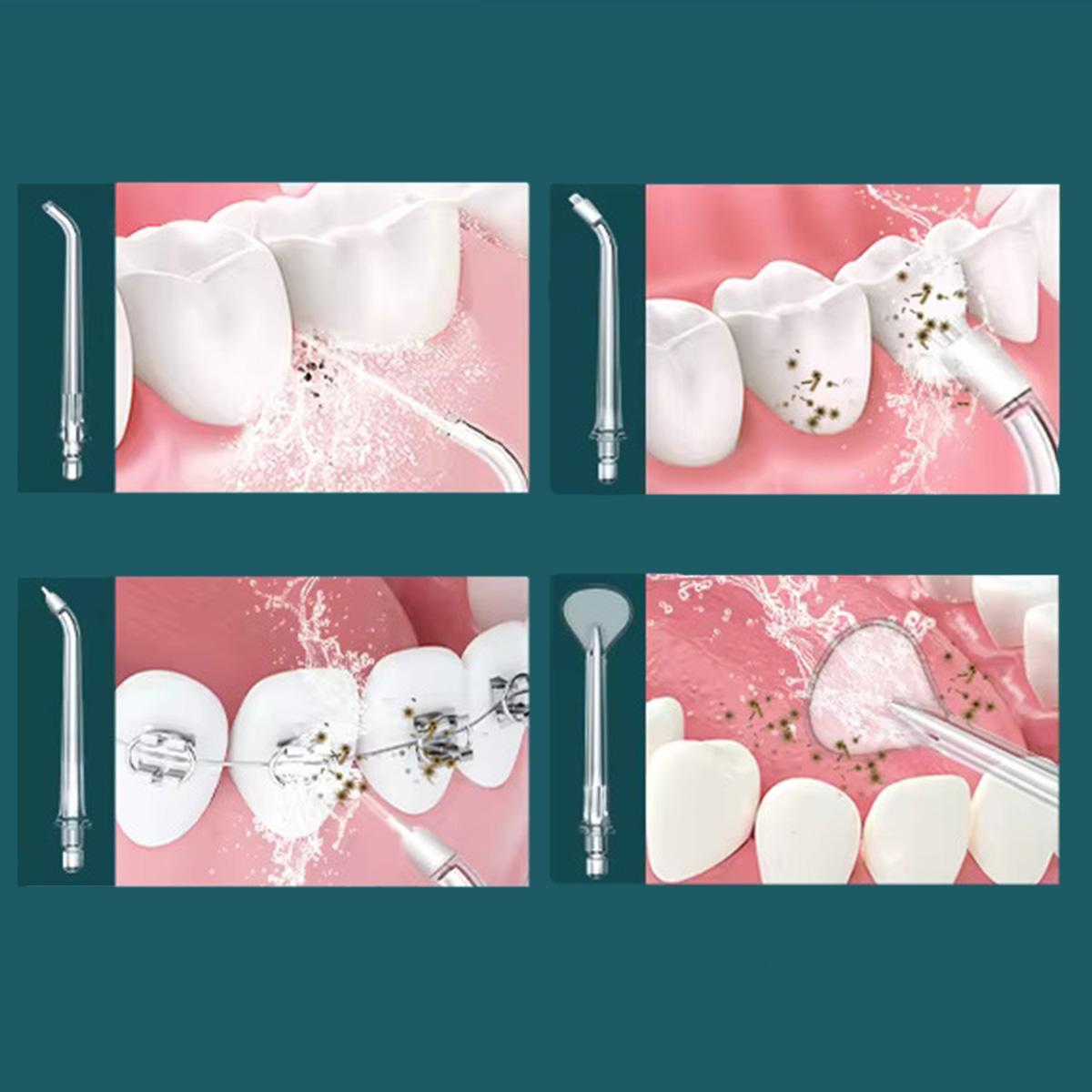 Ustvarjajo močan, koncentriran curek vode, ki natančno odstranjuje ostanke hrane in obloge med zobmi – idealno za vsakodnevno uporabo.
