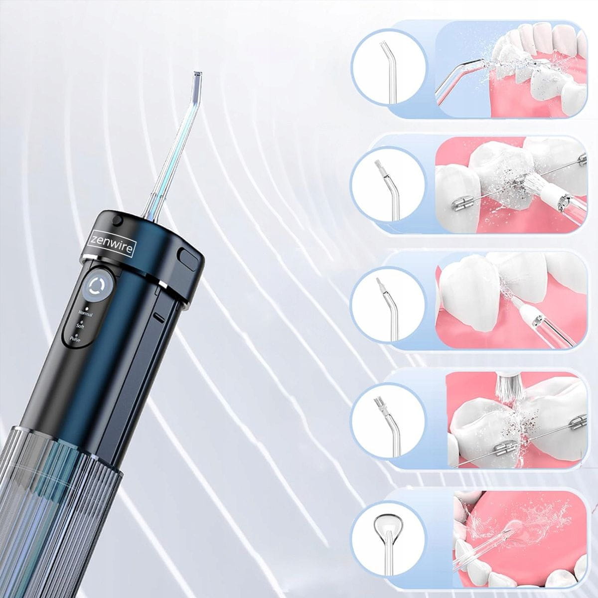 ✅ Z 6 priloženimi nastavki je irigator Zenwire WF309 celovito orodje za dnevno ustno higieno.